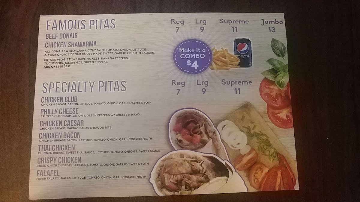 Guests often enjoy these dishes as a convenient lunch or a relaxed dinner, with options that suit both solo visits and group gatherings. The popular pita wraps, like the beef donair and chicken shawarma, pair well with side orders such as crispy fries, falafel dippers, or onion rings, which complement the laid-back setting. For those with a sweet tooth, the homemade baklava offers a satisfying, indulgent finish that fits naturally into the welcoming and unpretentious atmosphere.